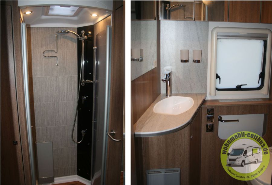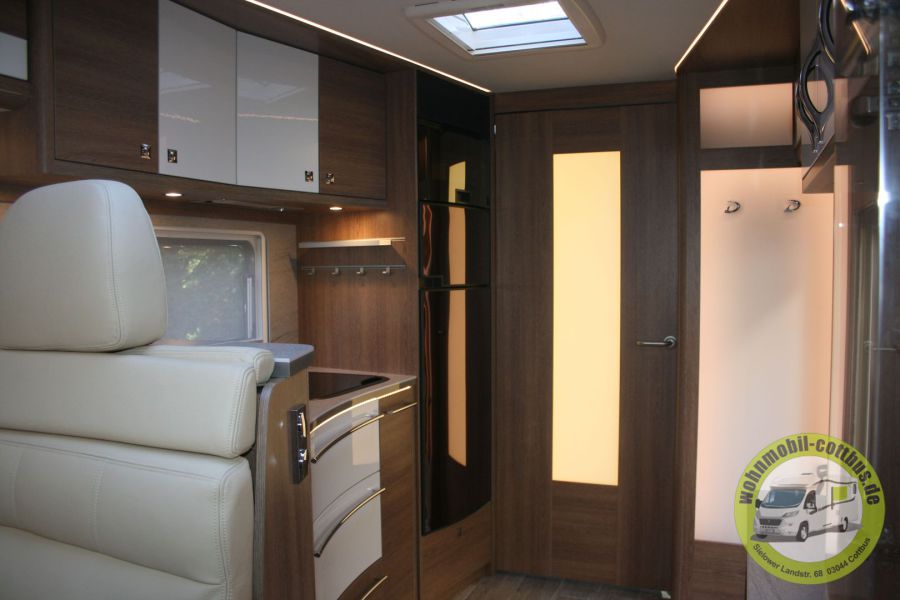 Villa Royal das Luxoriöse High End Wohnmobil überragt mit seiner gigantischen Größe alle unsere bisherigen Wohnmobile. Der Innenraum lässt sich durch eine Zwischentür abtrennen. Somit kann man den hinteren Raum (Küche und Wohnbereich) schließen und gelangt dann in den vorderen Raum (Badezimmer, Schlafzimmer und Fahrerraum). Die Villa Royal besitzt durch ihre Größe viel Stauraum unter anderem auch im Boden.